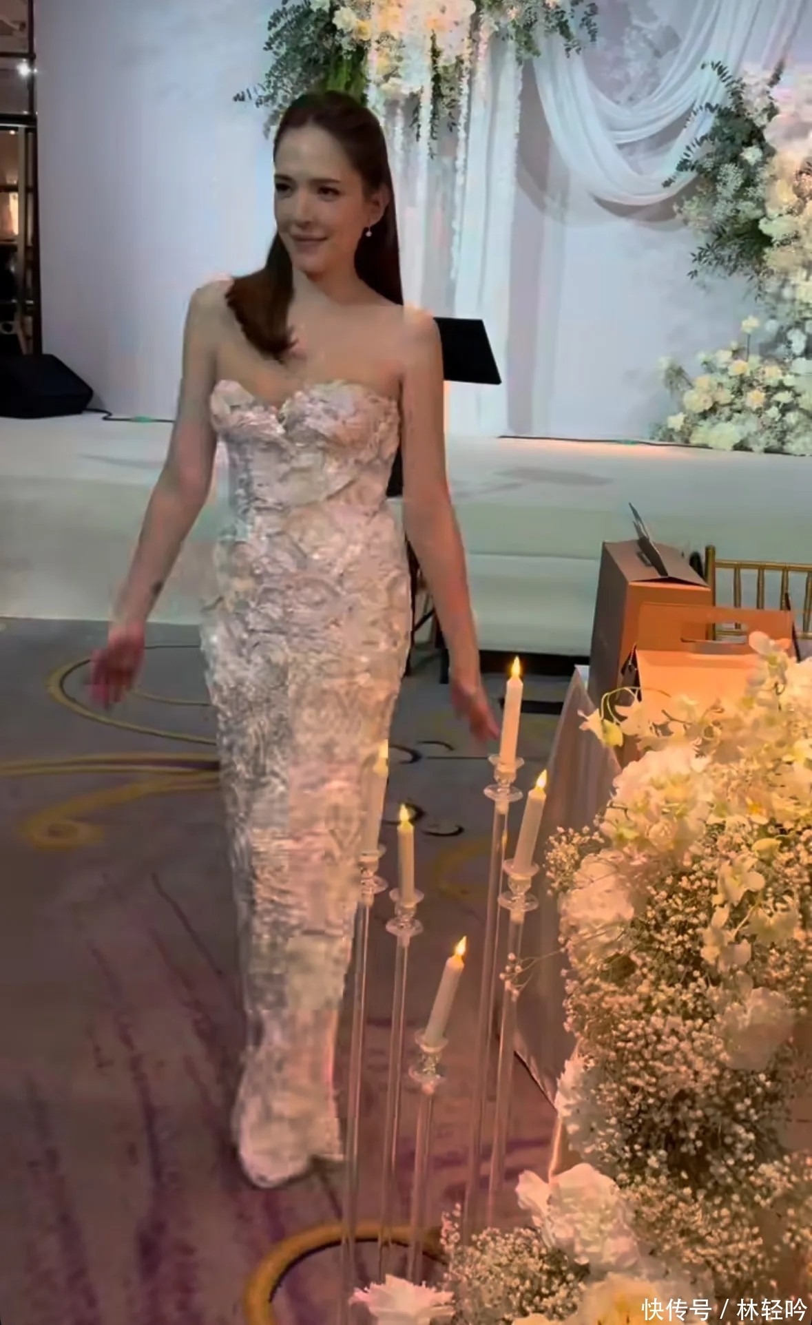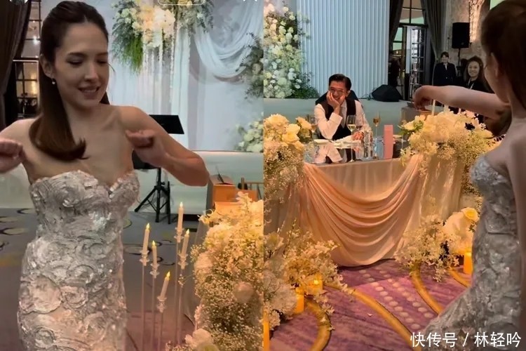 透过宾客分享的现场视频可见,许玮甯身穿华丽礼服翩然起舞,背景音乐正是她与邱泽定情之作《当男人恋爱时》的主题曲。